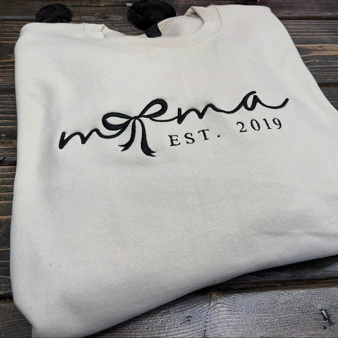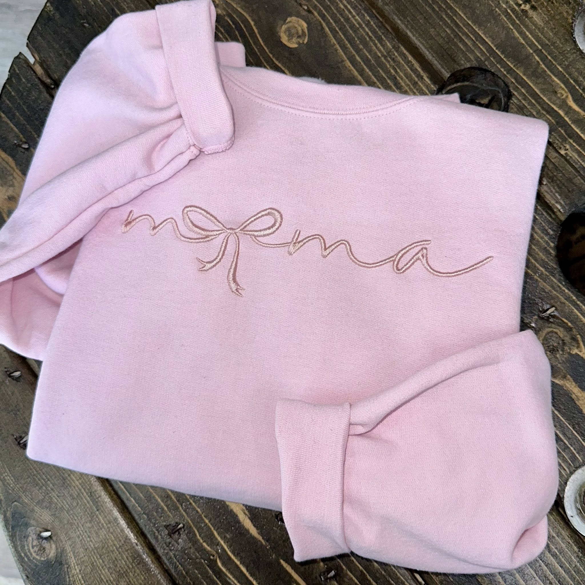 Embroidered MAMA crewneck - script font with bow